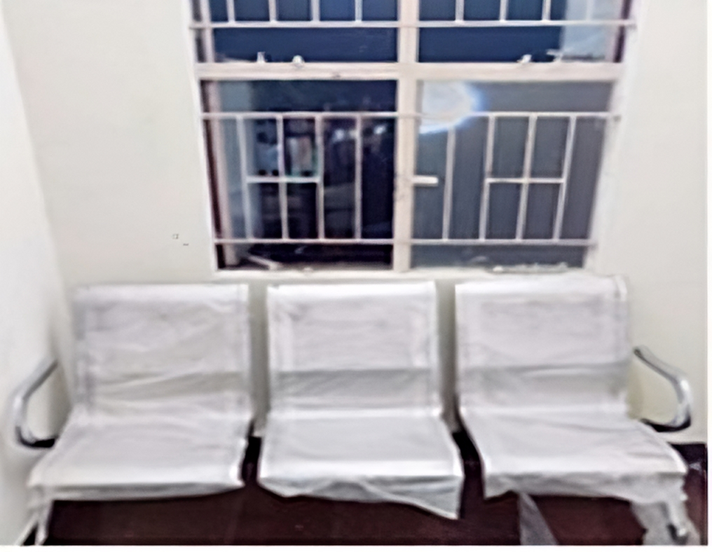• Fifteen Chairs with arm rest, Six S Type Chairs, Two stainless steel three-seated chair, One four-seated stainless-steel Chair, One steel Rack,4x4 Computer Table, Two feet wooden drawer, Two long wooden benches